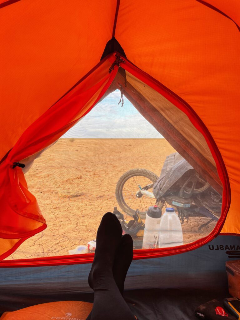 Le calze senza cuciture sono un must per evitare bolle e vesciche da sfregamento, ma un altro trucco è passare della vaselina sulla pelle prima di iniziare la tappa. La vaselina ammorbidisce la pelle e per i primi 5000 km percorsi in America Latina, dall’Ecuador alla fine del Perù, questo accorgimento mi ha evitato le noie da vesciche. Con il deserto ho dovuto razionalizzare il setup del passeggino ed eliminare ciò che non era strettamente necessario, ma dopo tutti quei km la pelle si era ispessita e non avevo più bisogno della vaselina.