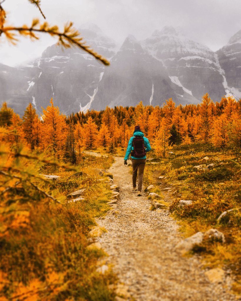 In autunno in quota può fare più freddo, soprattutto al mattino, ma niente che un paio di strati di vestiti tecnici non risolvano.