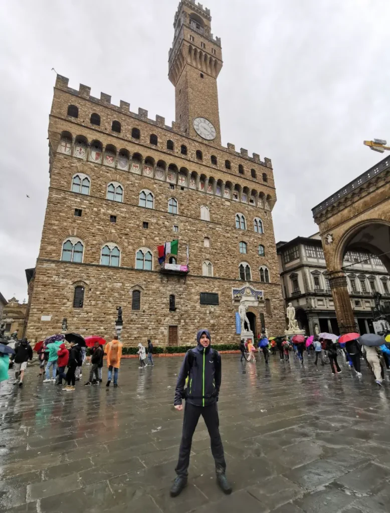 Gli ultimi chilometri diventano per noi una passerella trionfale. Arriviamo in Piazza della Signoria fradici, ma felici.