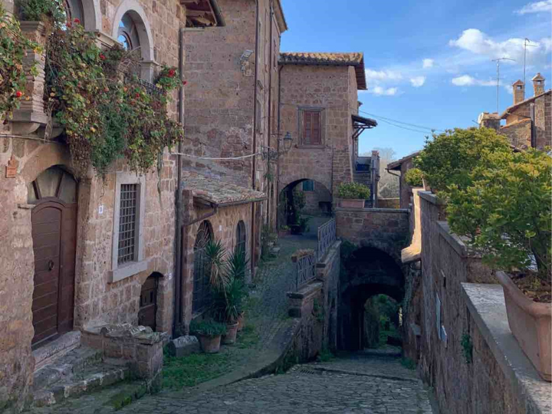 Dopo circa due ore di cammino, immersi in questo bosco dalle note incantate, siamo arrivati a Blera: anche questo paese si presenta arroccato su un piccolo rilievo tufaceo, circondato da macchie e da tipici giardini a terrazzamento.