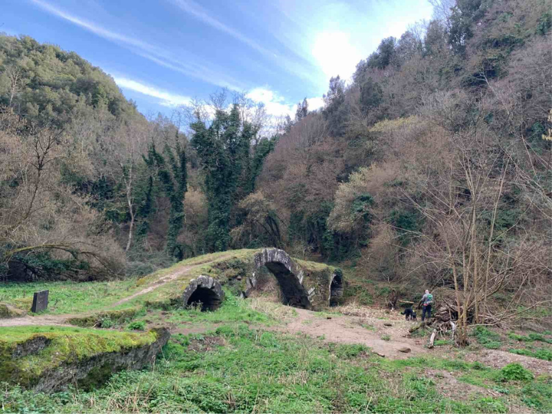 Lungo questa seconda tappa, costeggiando e guadando il fiume Biedano, abbiamo avuto modo di vedere tre mole (rovine di antichi mulini e dighe), altre tombe, grotte, specie diverse di flora e fauna, fino ad arrivare al Ponte del Diavolo, costituito da tre archi e situato sulla Via Clodia, proprio sotto il paese di Blera.