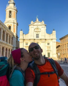 Era il 2018 e da tempo, covavamo il desiderio di un’avventura diversa: un trekking di più giorni zaino in spalla. La scelta è caduta sulla Via Lauretana con partenza da Assisi e arrivo a Loreto. Il giorno prima della partenza, lasciamo l’auto a Macerata. Con gli zaini saldamente sulle spalle e il cuore colmo di attesa, prendiamo tre diverse corriere che ci portano fino ad Assisi dove passiamo la notte. Domani avrà inizio il nostro cammino!