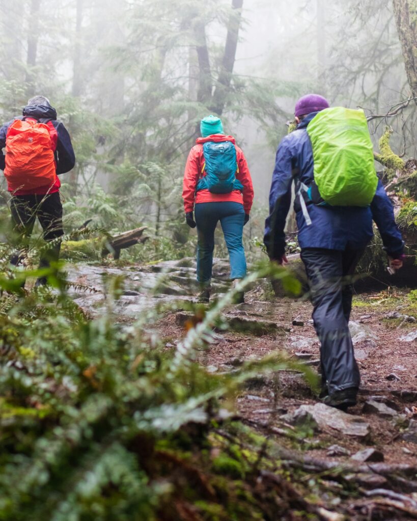 Le calze sono sempre qualcosa che merita un investimento, tanto quanto le scarpe: calze in lana merino, morbide e rinforzate possono evitare o ridurre le vesciche, quasi garantite quando il piede è bagnato. I guanti, soprattutto quando usi i bastoncini, salveranno le tue mani dal freddo, così come un cappello e una protezione per il collo eviteranno ulteriori dispersioni di calore. Poche cose serviranno quanto il coprizaino, fondamentale per tenere all’asciutto tutto quello che c’è dentro – dall’elettronica, alla credenziale e ai documenti in carta, ai vestiti di ricambio.