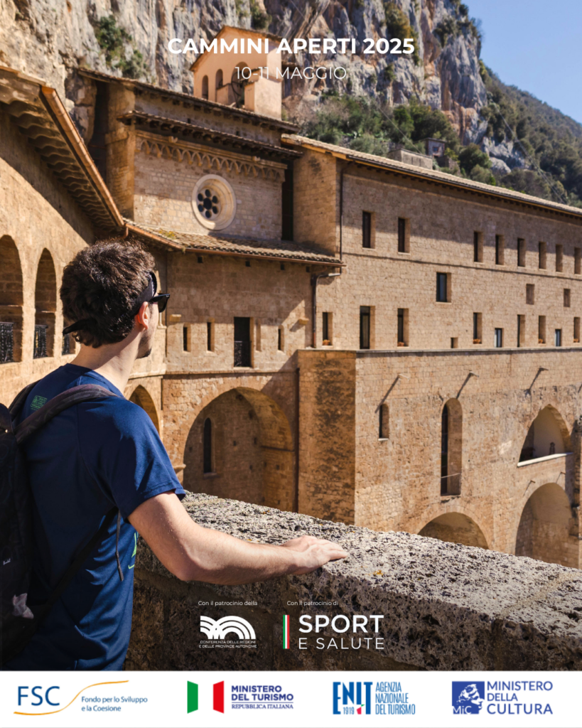 iniziativa “Cammini Aperti” – Iniziativa finanziata con il Fondo Sviluppo e Coesione, Piano Sviluppo e Coesione a titolarità del Ministero della Cultura, “I cammini religiosi di San Francesco, San Benedetto e Santa Scolastica – Azioni trasversali” di cui è beneficiario il Ministero del Turismo.