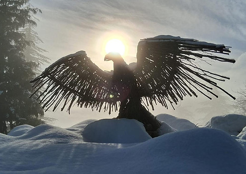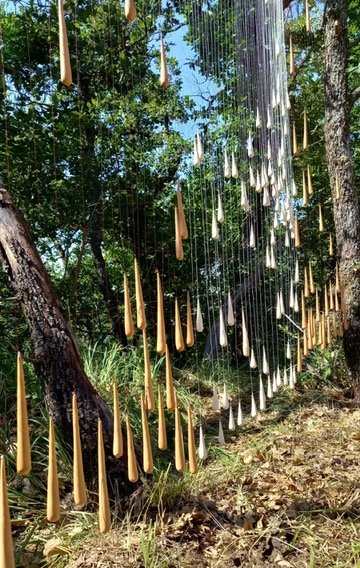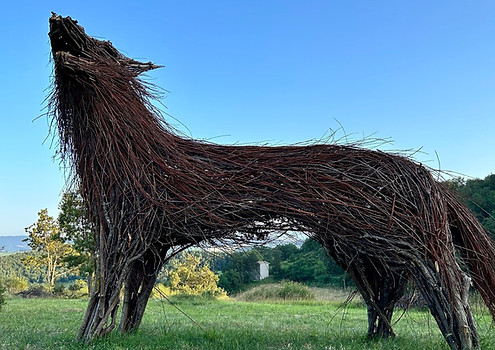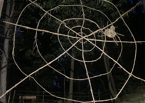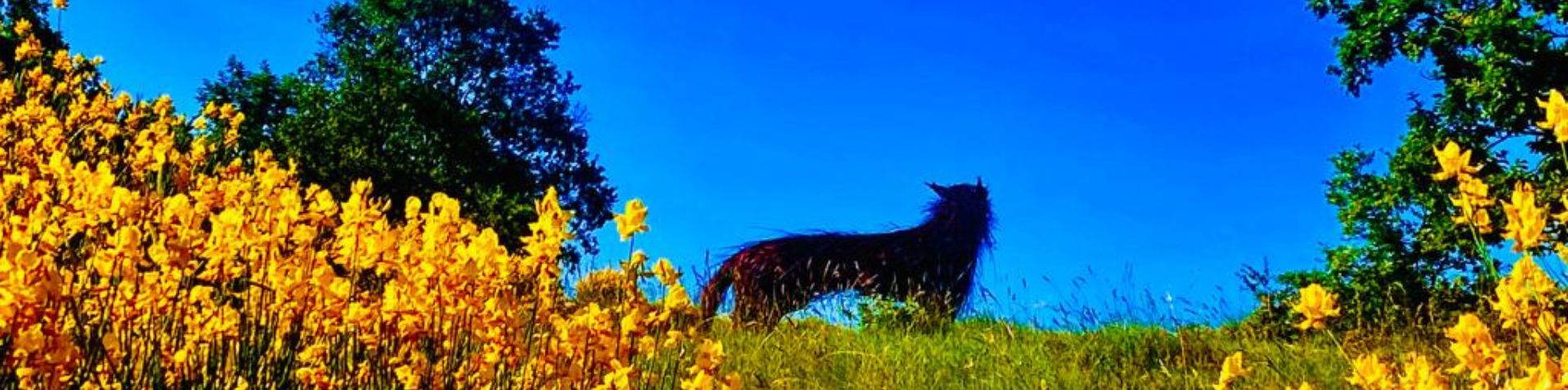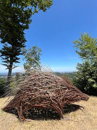 Attraversando castagneti secolari arriviamo dove è installata l’opera Istrice e sul Monte Bastia (942 m) l’opera la Tela del Ragno.
