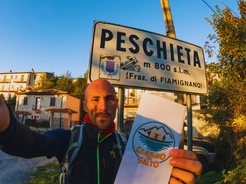 Il Cammino del Salto inizia e termina a Peschieta, una piccola frazione del comune di Fiamignano, nella Provincia di Rieti. Questo percorso ad anello, lungo circa 95 km e suddiviso in 5 o 6 tappe, è immerso nella bellezza del Cicolano e nella Valle del Salto, attraversando i comuni di Fiamignano, Petrella Salto, Varco Sabino e Pescorocchiano.