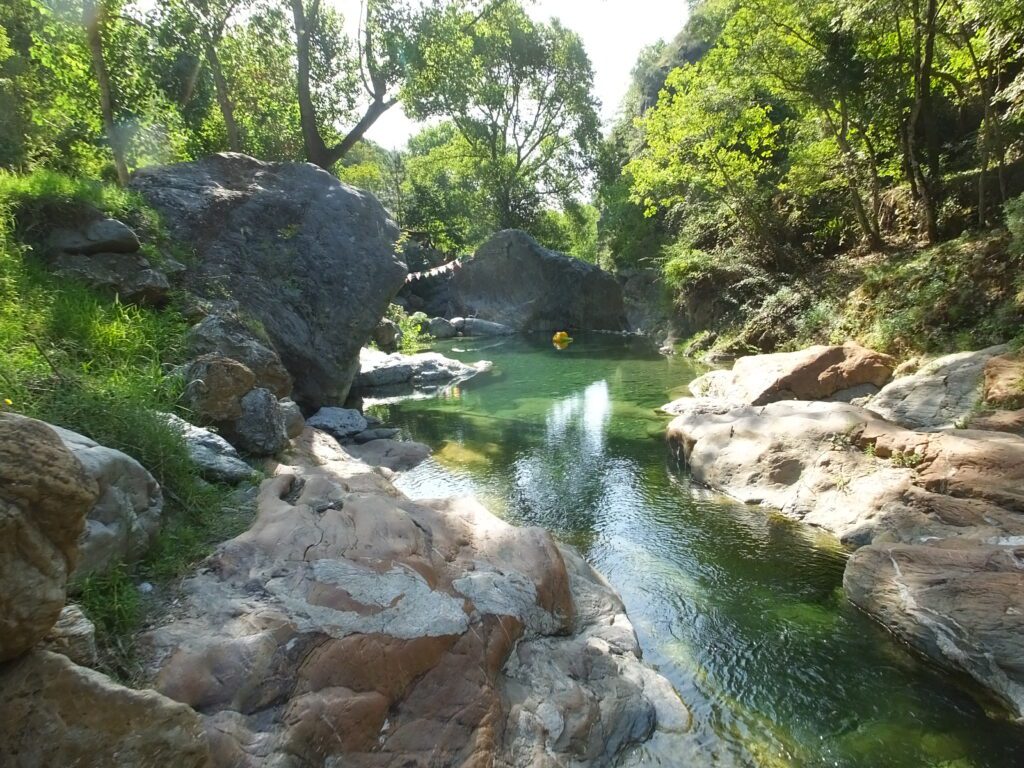 Seguendo una sterrata forestale, si prosegue verso il Vallone di Misitano, attraversandolo in un tratto in saliscendi e coperto da bellissimi esemplari di pini, querce, castagni, lecci e platani, in un territorio visibilmente provato da frane e smottamenti.