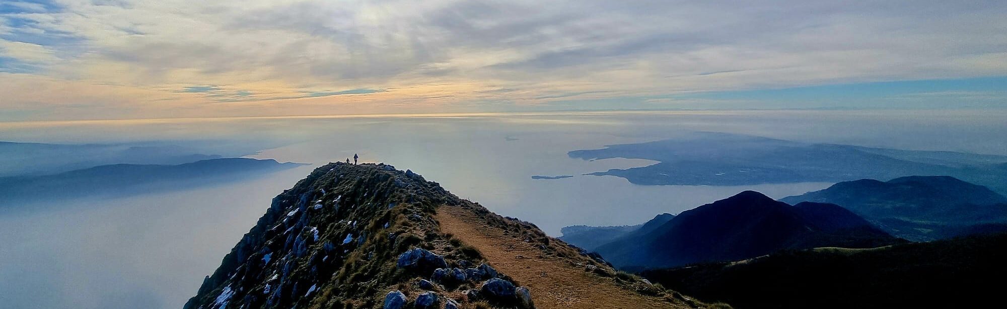 Il percorso completo, che arriva fino alla cima del Monte Pizzocolo (1581m) è il percorso più impegnativo.