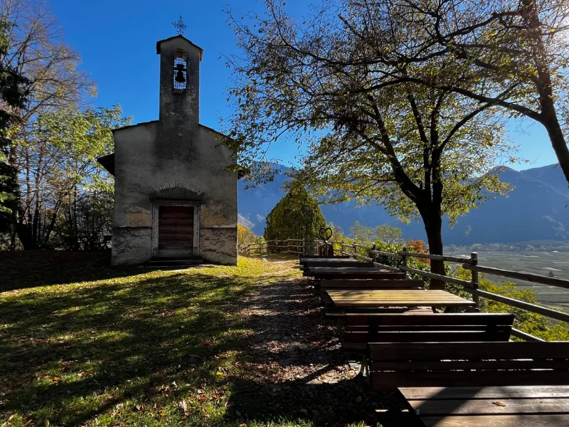 l cammino si distende infine nella piana tra i meleti, attraversando: Quaere: piccolo nucleo rurale, il cui nome antico richiama la parola latina quaerere (cercare), forse legato a vecchi percorsi di pellegrinaggio o transumanza. Lochere: Lochere con la sua atmosfera rurale conserva l’impronta di borgo agricolo, con case sparse, orti e una quiete che invita alla contemplazione. È il punto perfetto per una pausa rigenerante, lontano dal traffico e immerso nel paesaggio. Santa Giuliana: località con la chiesa del 1929 progettata da Ettore Sottsass senior, padre del celebre designer.