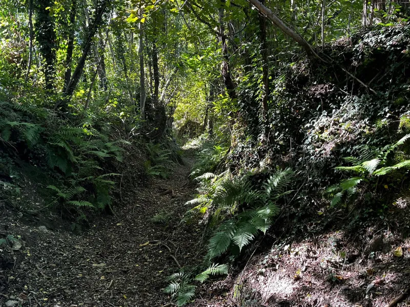 Poco dopo l’’Hotel Legno si imbocca il sentiero per l’Eremo di San Lorenzo, a 1150 m di quota. Di origini altomedievali, fu curato da eremiti fino al XVIII secolo. Contiene affreschi del XIV secolo e graffiti lasciati dai pellegrini durante epidemie e calamità. La quiete e la vista lo rendono uno dei luoghi più spirituali del cammino. E infine la discesa, si scende passando per: Località San Giorgio: con vivaio e accesso alla Rocchetta, promontorio panoramico a 700 m, usato come punto di osservazione durante la Grande Guerra. Capitello di San Giorgio: punto votivo e panoramico.