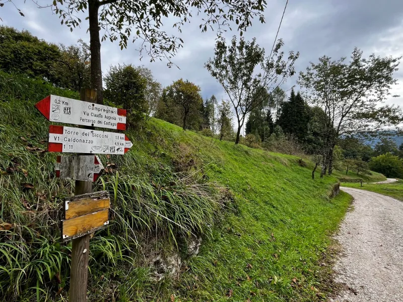 Dopo Roncegno, si cammina lungo i campi sulla Via Claudia Augusta Altinate, antica strada romana che collegava Altino (VE) al Danubio. Tratto pianeggiante e contemplativo.