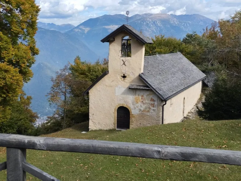 Il cammino riprende costeggiando il Lago di Caldonazzo, tra spiagge e riflessi mattutini. Si attraversa Valcanover, frazione affacciata sul lago, nota per la sua chiesetta di Sant’Antonio da Padova (1712), costruita per volere di Antonio Valcanover. Si sale verso Santa Caterina, dove si trovano due chiese storiche: