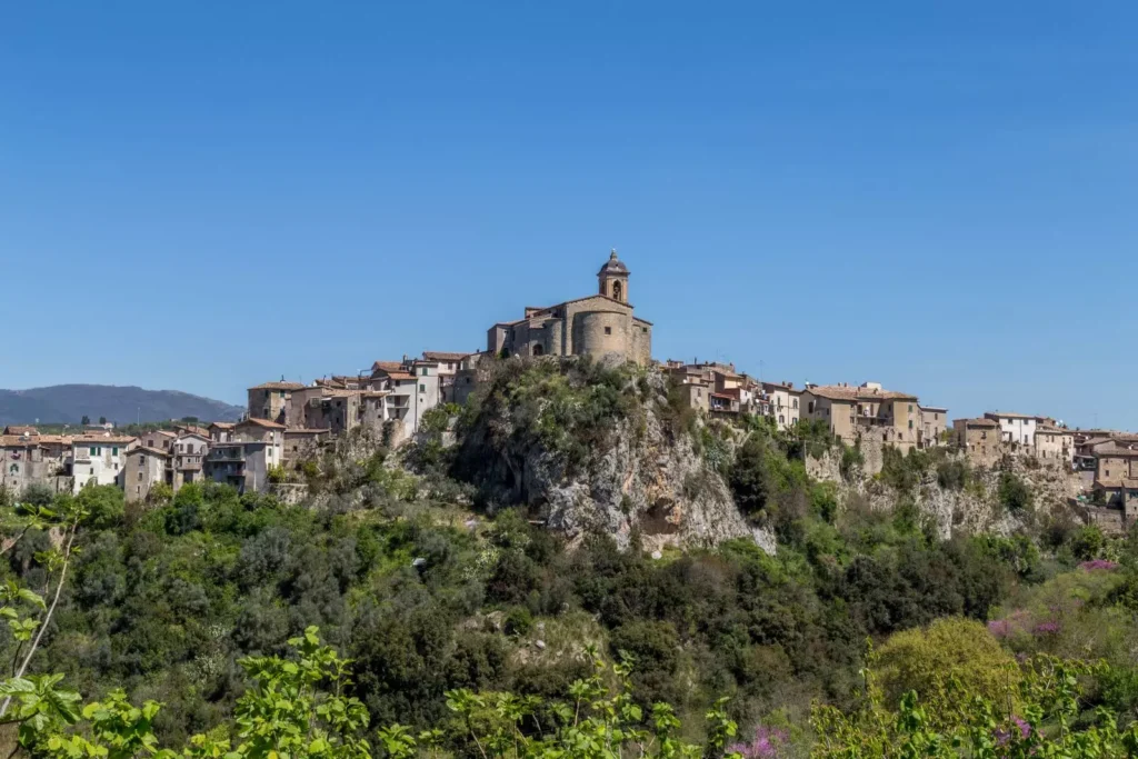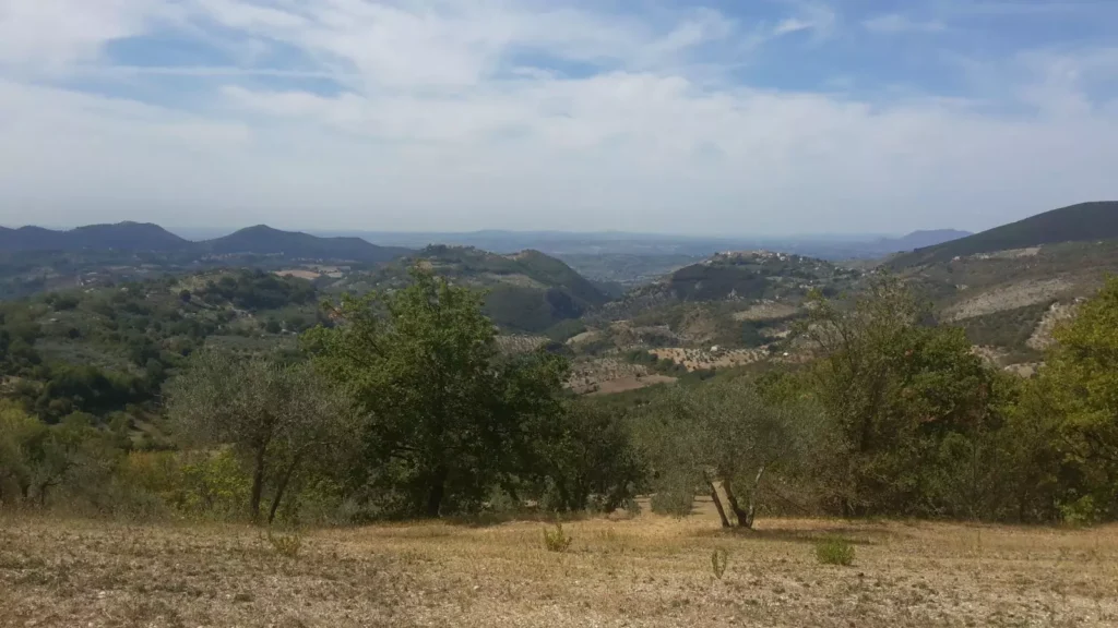 Lasciato Poggio San Lorenzo, il cammino incontra subito le antiche mura romane e le suggestive Pontiche, testimonianze di un passato millenario. La tappa si sviluppa in un paesaggio dolce e ondulato, tra boschi, colline e oliveti, dove la natura si intreccia con la storia e la spiritualità. Il percorso prosegue in discesa fino all’incrocio per Monteleone Sabino, raggiungibile con una breve deviazione. Il paesaggio si arricchisce di querceti monumentali e scorci incantevoli sulla campagna sabina. Lungo il cammino si incontrano due luoghi simbolici della zona: l’area archeologica di Trebula Mutuesca, antica città sabina, e la Chiesa romanica di Santa Vittoria, risalente al XII secolo. Oltre alla bellezza architettonica e alla spiritualità del luogo, meritano attenzione le catacombe e il pozzo d’acqua noto per le sue proprietà terapeutiche. Il cammino si snoda tra salite e discese, attraversando frutteti, vigneti e campi di olivo, fino a scendere nel fondovalle dove si incontra la Chiesa di San Martino. Da qui ha inizio la salita verso Poggio Moiano, borgo arroccato con un bel palazzo baronale e la Chiesa di San Giovanni Battista. Il tratto regala ampi panorami sulle montagne circostanti e sulle distese di oliveti, che caratterizzano il paesaggio della Sabina. Il cammino prosegue lungo l’altopiano, ai piedi del Monte Calvo, fino a raggiungere Ponticelli di Scandriglia. In questo piccolo centro si trova il Santuario di Santa Maria delle Grazie, importante luogo francescano soprannominato “La Perla della Sabina”. La sua posizione panoramica, il patrimonio storico e artistico e la forte devozione popolare lo rendono un luogo di grande suggestione. Nella chiesa si venera una miracolosa immagine della Vergine col Bambino e si conserva una preziosa tavola quattrocentesca raffigurante la Vergine in trono col Bambino tra i Santi Francesco e Antonio da Padova.