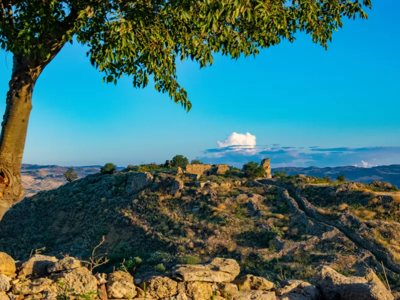 Tappa molto impegnativa per lunghezza e dislivelli, che ci porta sempre più nell’entroterra catanese, tra Mineo e Militello. Sullo sfondo, l’Etna, compagno fisso del cammino, mentre i campi lasciano il posto a colline, boschi e forre laviche. Il percorso ci permette di apprezzare anche le bellezze archeologiche di siti poco conosciuti e ricchi di fascino e le specialità enogastronomiche restano una potente attrattiva.