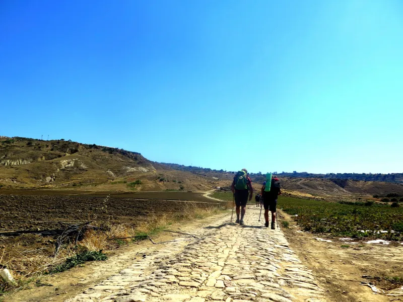 Lasciamo la roccaforte di Naro e ci addentriamo tra le colline delle contrade a più alta vocazione agricola del territorio, che produce cereali, legumi, mandorle e pistacchi. La tappa più breve della variante ci permette di scendere di quota e di incrociare il borgo agricolo di Campobello di Licata, un tempo zona di elevata produzione mineraria e, a brevissima distanza, Ravanusa, la città del Monte Saraceno e del miracolo del fico, meta del nostro cammino.