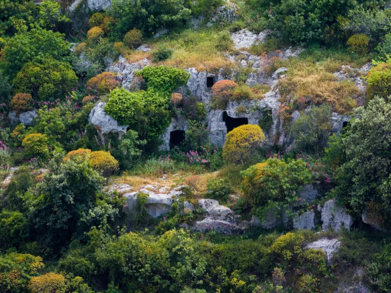 La sesta tappa è un’immersione nel mondo delle cave iblee dato che percorre interamente il tratto più paesaggistico della cava, seguendo il percorso 430A, lasciando entrare il viandante in un ambiente talmente particolare da essere unico in Sicilia. Tra eremi rupestri e siti archeologici neolitici e bizantini, si arriva al Rifugio Scirocco e da qui proseguendo, al centro di Ispica.