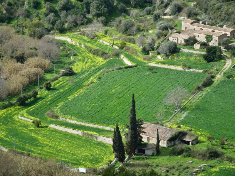 Tappa di media lunghezza, per lasciare il territorio nisseno ed entrare nel catanese. Dopo aver superato la piana di Gela camminiamo nel cuore della Via Fabaria, lungo le regie trazzere che dal pianoro niscemese seguono il fiume Maroglio per poi risalire verso l’entroterra calatino. Ci accoglie Caltagirone, città delle ceramiche, luogo simbolo della Sicilia più pittoresca e colorata, di un artigianato sapiente e di fervida devozione. Da Niscemi è possibile raggiungere Grammichele lungo una variante di due giorni che attraversa il bosco di Santo Pietro e ripercorre il tracciato storico più antico e attestato. Il punto tappa è differente, in un rifugio nel bosco. La variante prosegue anche lungo la tappa successiva ricongiungendosi al percorso principale alla fine della tappa 7.