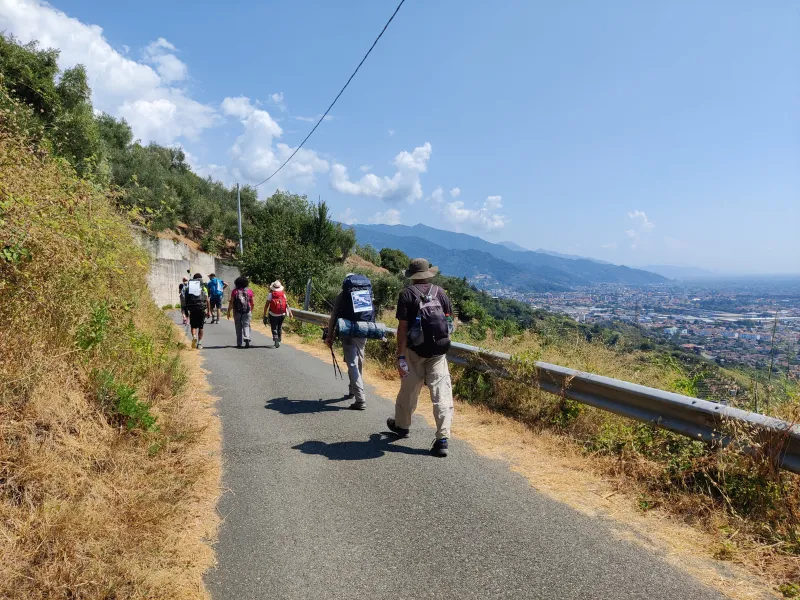 45 tappe in territorio Italiano, dal Colle San Bernardo a Roma, per poi continuare fino a Santa Maria di Leuca lungo la Via Francigena del Sud . Attraverso Valle d’Aosta, Piemonte, Lombardia, Emilia-Romagna, Liguria, Toscana, Lazio, quasi tutta l’Italia a piedi fino allo Stato del Vaticano.