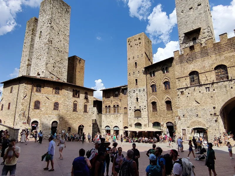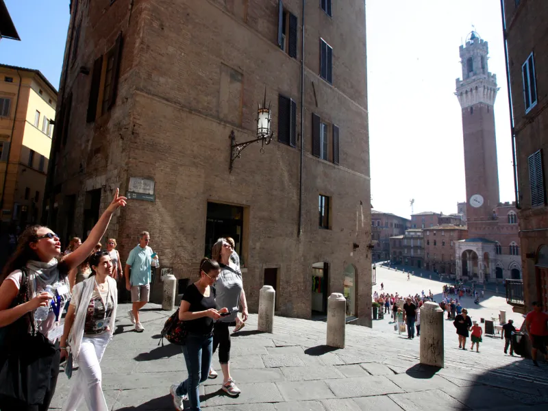 Dietro di noi possiamo ammirare il profilo di Siena, adagiata sulle colline all’orizzonte.