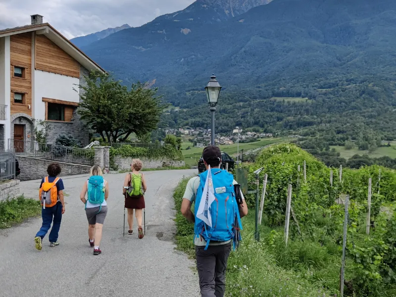 I più allenati possono proseguire verso Gignod o Aosta. Punti di ristoro in tutti i centri abitati; fontane frequentissime.