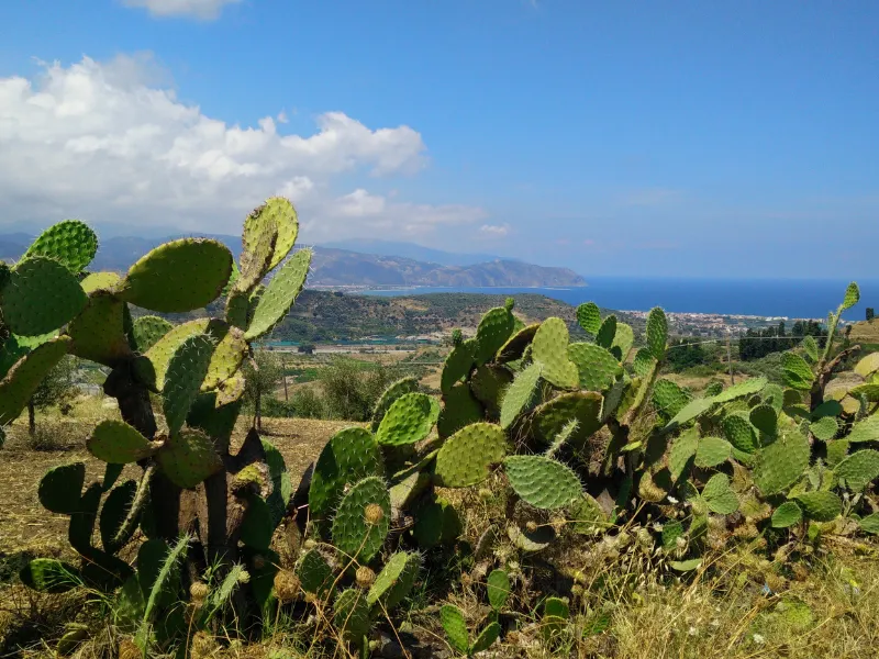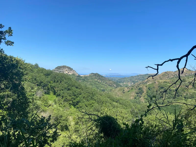 Si torna più bassi verso il mare, per giungere alla terrazza sulle Eolie che nelle giornate limpide fanno bella mostra da ogni finestra esposta a nord. Si scende di quota lungo l’alveo ormai vuoto di un torrente convogliato per fini agricoli e che permette di camminare in un paesaggio lunare fatto del letto del fiume, dalla luce chiara risplendente e dalle installazioni umane come piccoli buncher e torrette. Si giunge al borghetto di Mazzarà Sant’Andrea e di Rodì Milici, sede dei Cavalieri di Malta, un tempo protettori dell’isola di Rodi; un tratto lungo la valle tra le colline porta alla rocca di Castroreale.
