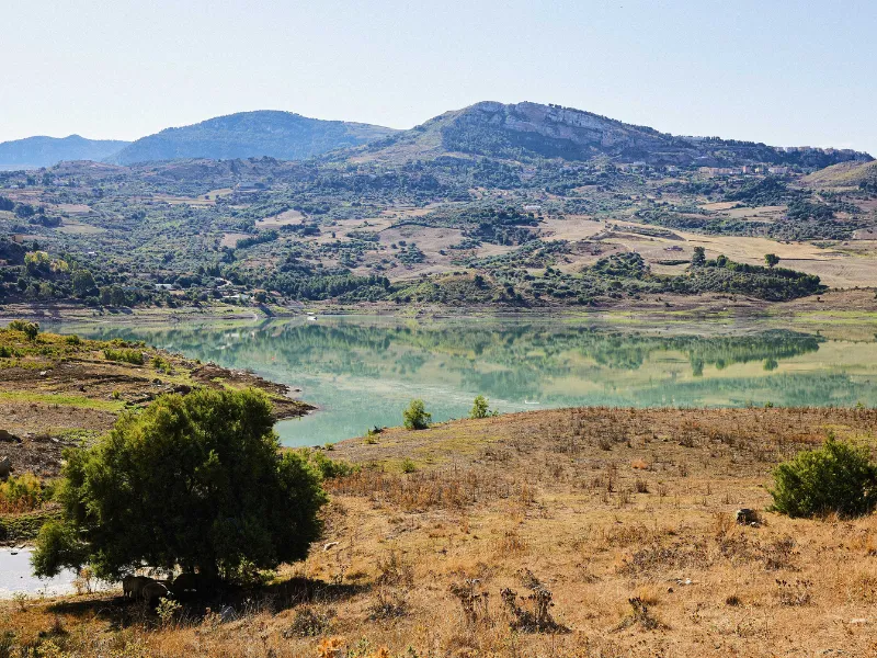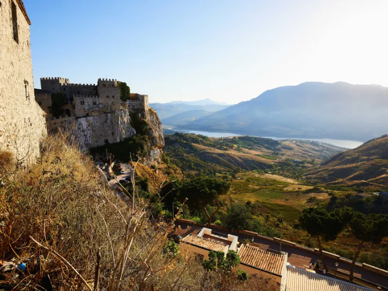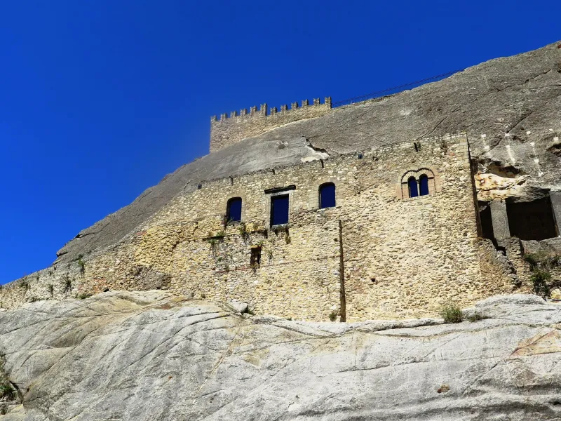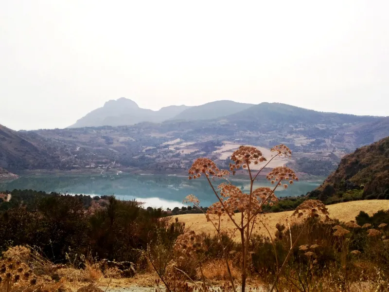 Una tappa breve per raggiungere la valle del fiume San Leonardo, trasformata in lago artificiale dalla diga Rosamarina che ha sommerso il vecchio ponte chiaromontano. Si cammina su sterrati e trazzere che si inerpicano attorno alla collina della rocca di Caccamo col suo imponente sistema fortificato. Un castello ancora intatto attorno cui si raccontano leggende e storie di cavalieri valorisi e sfortunati, gentili dame e fantasmi in catene.