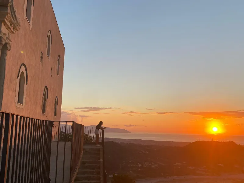 Altra tappa piccola che può facilmente essere unita alla precedente e che permette di arrivare a mare, sulla costa tirrenica di Villafranca, dopo 20 giorni passati a camminare in montagna e collina. Il piccolo borgo di Villafranca è protetto dal castello di Bauso, dimora nobiliare del 1600 visitabile durante la tappa. A breve distanza e, precedentemente tappa della via, il Santuario dell’Ecce Homo di Calvaruso, un borgo di Villafranca, che conserva le testimonianze religiose della presenza dei frati francescani dal 1500 in questa zona di Sicilia.