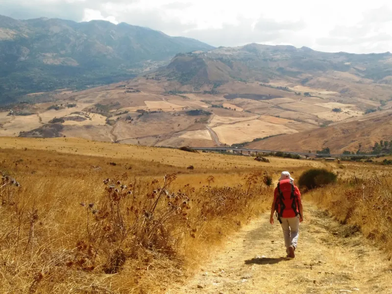 Dalle piane del fiume San Leonardo e del Torto, confluenza di genti che hanno colonizzato queste valli dal tempo dei sicani e dei greci, lo scenario del Cammino muta verso le pendici delle Madonie. Inizia con le prime salite irte l’Appennino siculo che ci conduce monte dopo monte fino allo stretto di Messina. Intanto attraversiamo insediamenti bizantini e chiese rurali per giungere al primo dei borghi montani madoniti, Montemaggiore Belsito.