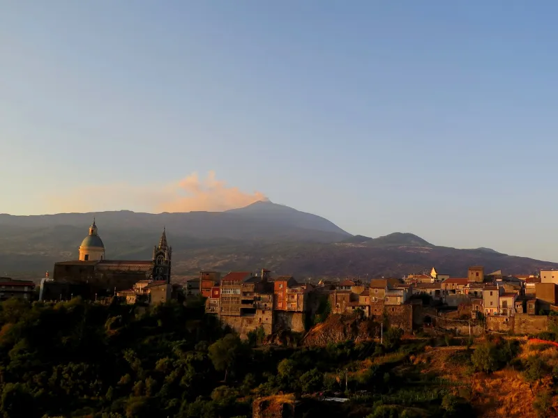 Si incontra di tutto in questa tappa: dalla statua del Cristo redentore all’uscita del borgo che da un pò il sapore di Rio, al cimitero inglese dei conti inglesi Nelson, un tempo proprietari della Ducea di Bronte e testiomoni del periodo storico tra le guerre napoleoniche e l’unità d’Italia; da Maniace, piccolo insediamento,che con la sua abbazia bizantina e poi medievale è il punto di congiunzione della Via Francigena Fabaria alle superbe chiese di Randazzo, la porta nord dell’Etna. La città si presenta all’ingresso col suo inequivocabile materiale da costruzione: pietra lavica dell’Etna che imponente sovrasta questo comune.