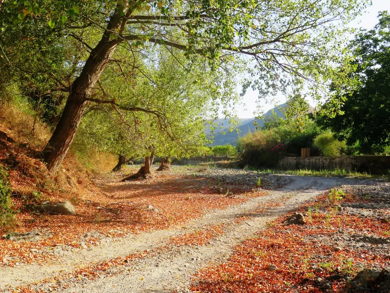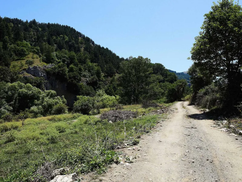 Percorso con fondo sconnesso in discesa nella cui ultima parte si attraversa un bosco di noccioline (periodo di maturazione: agosto). Non vi sono fonti d’acqua