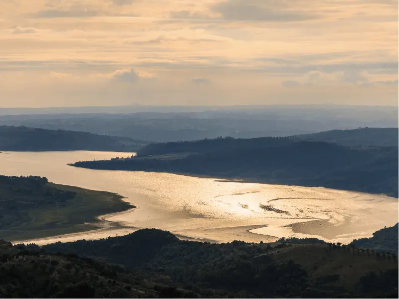 Il lago di Corbara è uno di quei luoghi che in autunno si trasforma completamente. Durante il percorso, quando il sentiero si apre improvvisamente sulla vista del lago, ti ritrovi davanti uno specchio d’acqua circondato da colline che in questa stagione sono un mosaico di colori caldi.