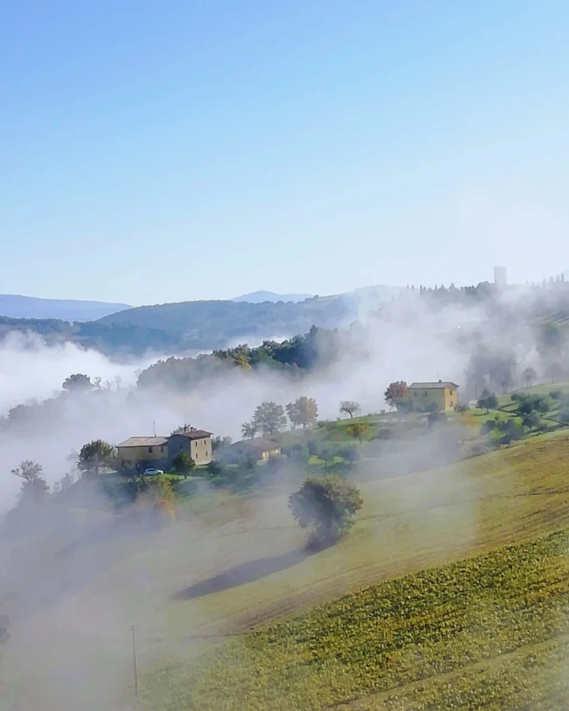 Restano una dozzina di chilometri facili su secondarie asfaltate. Alle nostre spalle la Toscana con il parco delle foreste Casentinesi e l’Alpe della Luna; davanti, l’Umbria. Sulla collina appare Citerna: traduzione pratica = ultimi chilometri in salita. Non amo le salite a fine tappa—soprattutto dopo 30 km—ma con Andrea si sale “di quota mentale” e metri dopo metri entriamo in uno dei borghi più belli d’Italia. Il B&B è poco prima del paese: doccia, riposo e qualcosa di semplice da mangiare in camera. Domani capiremo il perché di tanta bellezza.