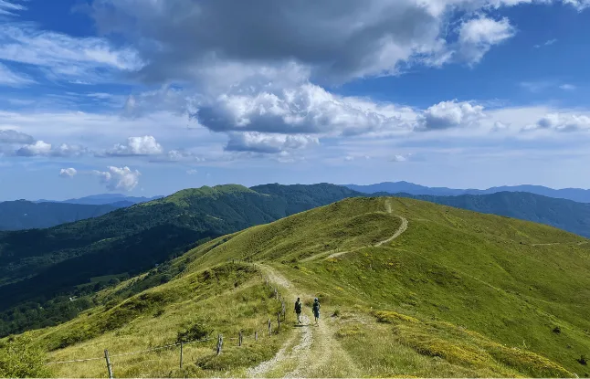 Varzi mi accoglie con il suo fascino discreto: un borgo pittoresco, il mercato in piazza, un ritmo di vita decisamente più lento rispetto alla città. La Via del Sale parte proprio dal centro ed è segnalata benissimo. Dopo appena due chilometri ti ritrovi già immersa nel silenzio, lontana dai rumori e dal cemento. Il sentiero sale subito, si allontana rapidamente da tutto ciò che è costruito. Camminando, ho iniziato a sentire che stavo davvero lasciando qualcosa alle spalle.