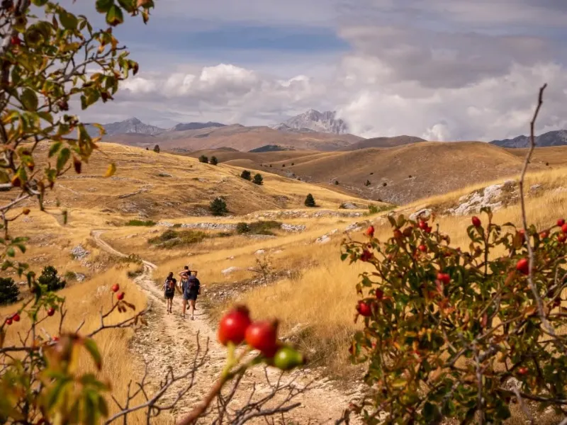 Before leaving Rocca di Calascio (1464 m), we indulge in a thorough tour of the fortification and enjoy a breathtaking view of the highest mountains in the Gran Sasso range. The section of the trail that separates us from our destination today is simple and scenic, suitable even for families with children.