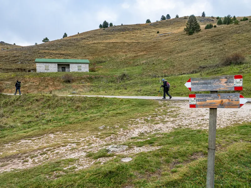 Water sources present at the ‘arrival and departure of each stage. Along the first stage you can buy water at the Fontari Refuge (42.440208, 13.570445) and at the Racollo Refuge (42.3935264, 13.6563649). on the last stage you can buy water at the Montecristo Refuge (42.4138748, 13.5586363)