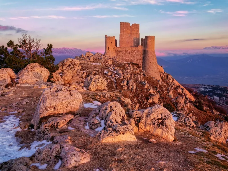 We continue on our way and, with a few strides, reach Calascio, a splendid village perched on the southeastern ridge of the mountain where the imposing Rocca stands. An architectural masterpiece of Norman origin, enlarged and equipped with four cylindrical towers in the late 15th century, it has been listed by National Geographic as one of the 15 most beautiful castles in the world.