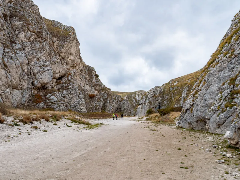 We walk toward the Pietranzoni Pond (1660 m) we can observe herds of cattle and horses grazing. In the stillness and silence of the plain, we glimpse the ruins of the Church of Sant’Egidio and then take, without delay, the Scoppaturo or Valianara Canyon (1475 m). The setting for numerous films including, …They kept calling it Trinity, the Desert of the Tartars and King David, the Canyon represents the most interesting and original naturalistic attraction of this stage.