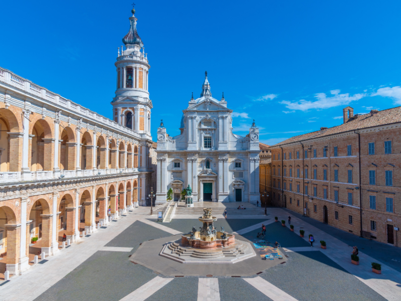 Da sud, la Via Lauretana parte dalla Basilica di San Pietro a Roma, si snoda nel Lazio e in Umbria fino ad Assisi, per poi salire verso il Santuario della Santa Casa di Loreto, meta mariana tra le più importanti al mondo.