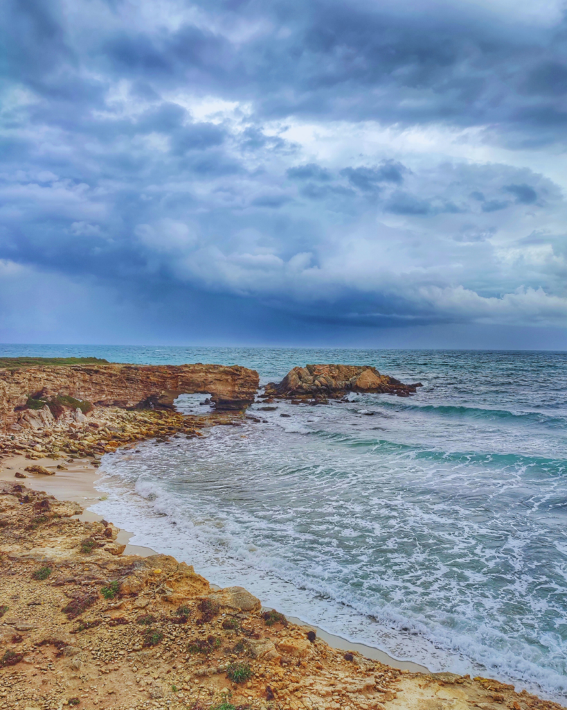 Se c’è una cosa che ho capito oggi, è che il Salento ama sorprendere. E anche un po’ prendere in giro i camminatori. Sole? Presente. Nuvole? Certo. Vento? A tratti fastidioso. Pioggia? Ovviamente sì, ma solo quando pensavo di averla scampata. La giornata è iniziata con entusiasmo e una leggera illusione di stabilità meteorologica. Uscendo da San Foca, il sole mi ha fatto credere che sarebbe stata una tappa da cartolina. Arrivato a Roca Vecchia, la grotta della poesia sembrava brillare sotto la luce perfetta: acqua turchese da fare invidia ai tropici e scogli bianchi levigati dal tempo. Un vero spettacolo.