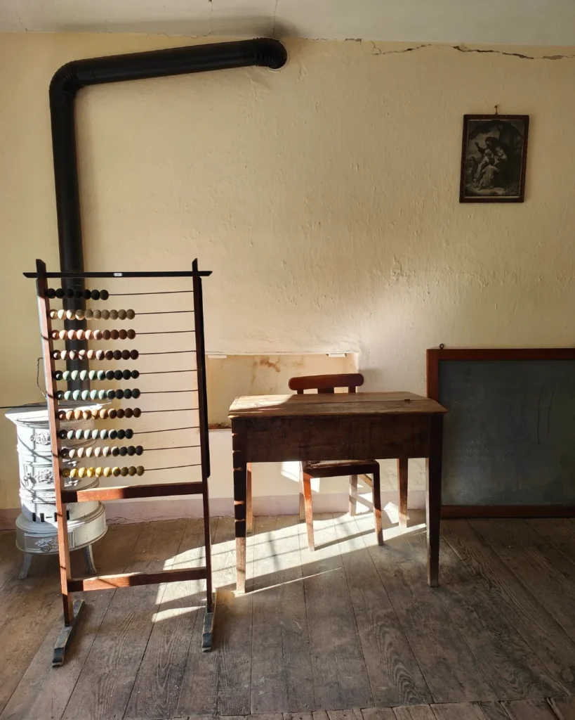Gabriele ci porta davanti a una piccola scuola valdese: è ancora integra e arredata com’era circa trecento anni fa. Seduti lì, tra banchi, e dettagli d’arredamento d’altri tempi, ci racconta cosa hanno vissuto circa 40 bambini valdesi in quelle valli. È una storia che conoscevo poco, e che sono felice di aver ascoltato così, guardando negli occhi qualcuno che quella tradizione la incarna davvero. Gabriele, se mai dovessi leggere questo diario: grazie per la tua testimonianza.