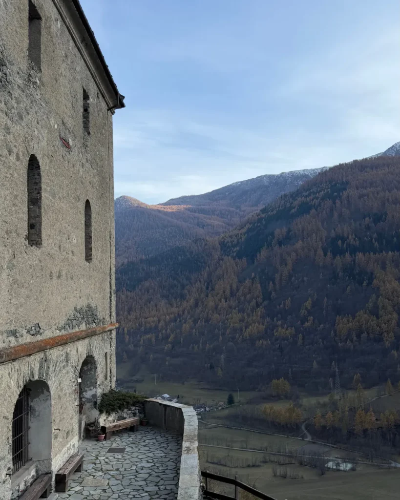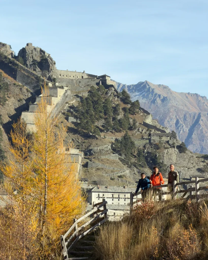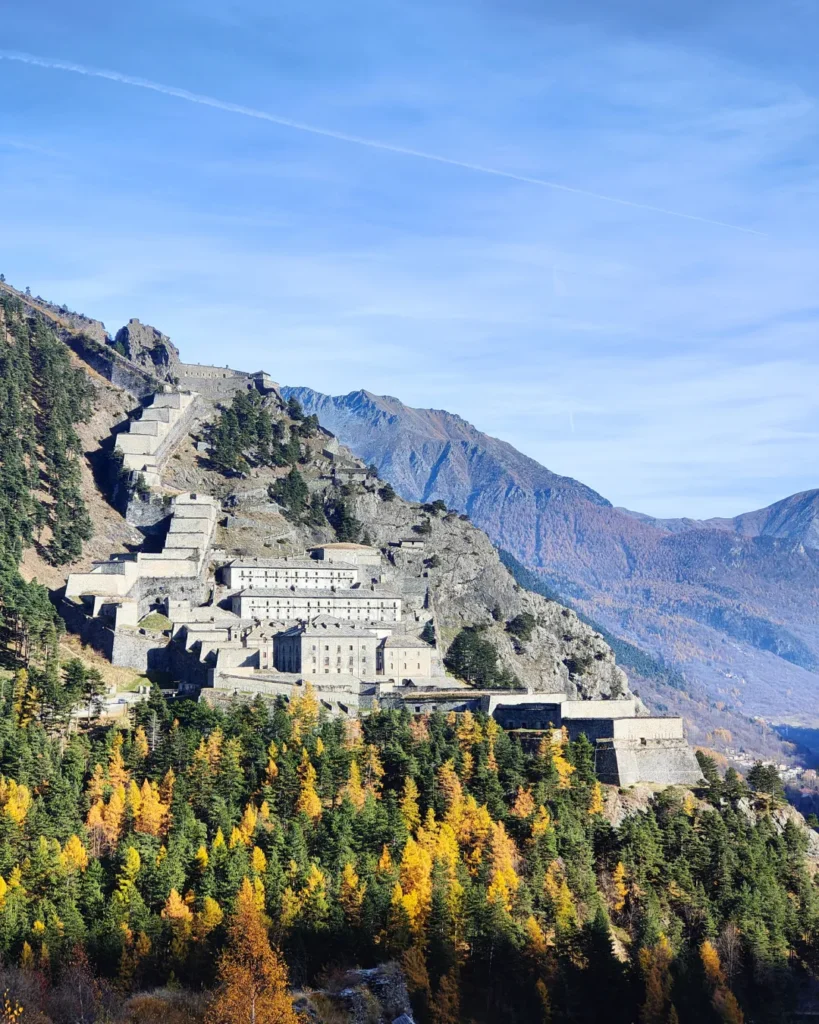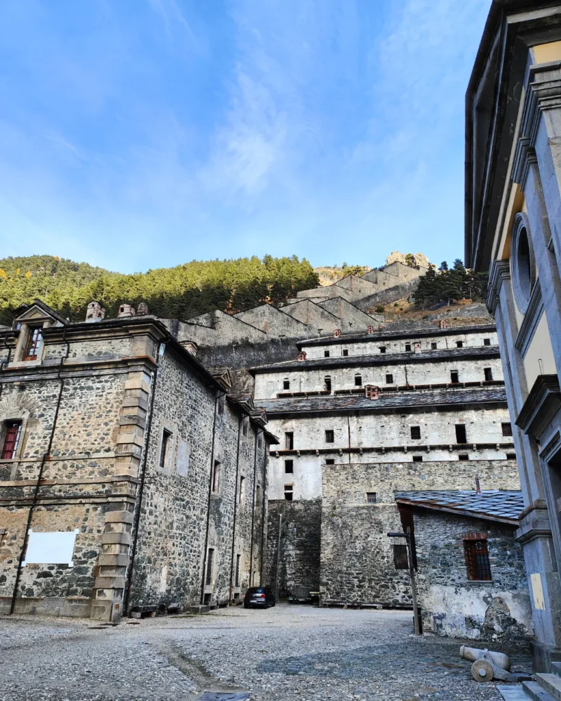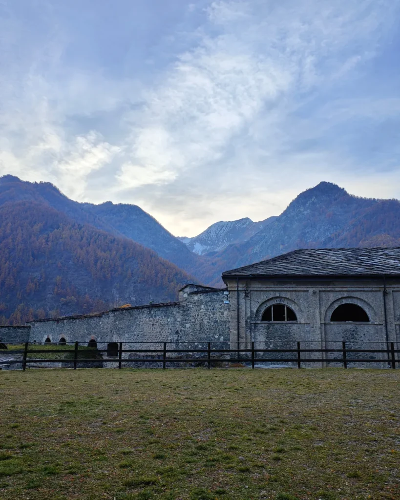 All’interno del Parco si trova anche la Selva di Chambons, l’ultimo borgo che attraversiamo prima che, in lontananza, inizi a delinearsi il profilo del Forte di Fenestrelle. Qui la storia cambia tono e prende il timbro delle voci femminili. Nel 1898, infatti, furono proprio le donne del paese a guidare una ribellione per impedire l’esbosco della Selva. Quel bosco sopra le case aveva (e ha tuttora) un ruolo decisivo: proteggere l’abitato da valanghe e frane. Quando compresero che stavano per tagliarlo, le donne si organizzarono, si opposero e alla fine… riuscirono a salvarlo. Guardare oggi quegli alberi accesi di arancione, conoscendo questa storia, rende il paesaggio completamente diverso ai nostri occhi.
