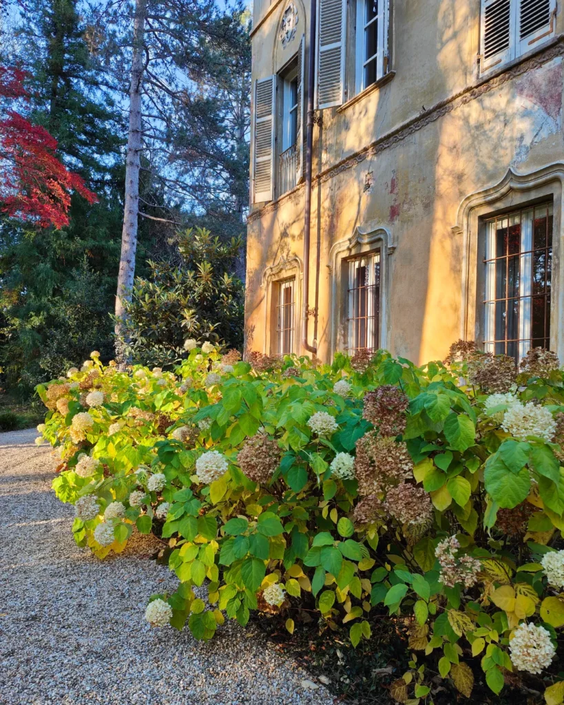 Ci mettiamo in cammino e dopo pochissimi km arriva già la prima sosta al castello di Miradolo che inizialmente si nasconde dentro il grande parco che lo circonda. Qui crescono più di duecento varietà di ortensie, cinque alberi monumentali e una quantità di specie animali e vegetali che ci fanno sentire in un vero e proprio giardino “vivo”. Il sito fa parte del progetto ortensieTO, ovvero il distretto pinerolese delle ortensie. Dimenticavo una nota importante, la tappa prende il nome di “Ortensie e Castelli”, così chiamata da chi questo cammino l’ha organizzato. E direi che il luogo in cui siamo spiega benissimo il perché del nome.