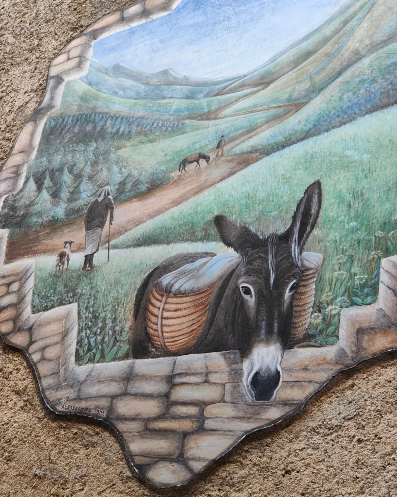 Spinti dalla stanchezza ma anche dalla curiosità, superiamo Pomaretto non prima di esserci fermati ad ammirare i suoi murales. Sono “celebri” se cosi si può dire, anche i bunker antiaerei che una volta difendevano la popolazione dalla grande guerra, ma chiusi al pubblico oggi.