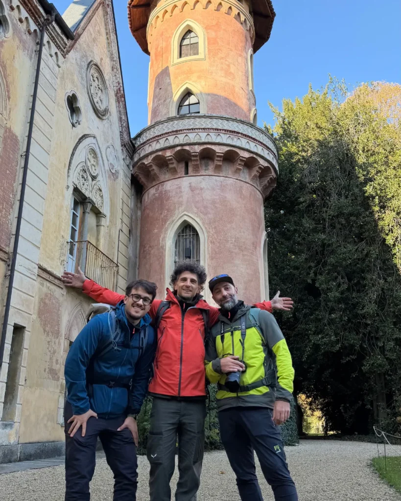 Uscendo dal cancello, all’improvviso, da lontano una figura femminile ci viene incontro. Chi sarà mai? Ovviamente potevamo immaginarlo: è Elena, ovvero Hikinghacks per chi la segue sui social. Da buona torinese e piemontese, ha deciso di percorrere questa tappa con noi (a suo rischio e pericolo). Il team si allarga e la giornata si riempie di energia.