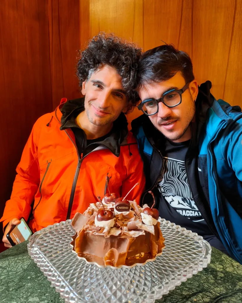 A un certo punto apro lo zaino per prendere la borraccia e sento sotto le dita l’assaggio di galupperia che ci avevano dato all’ufficio turistico. Guardo Vincenzo e Billo: «Raga, andiamo a fare un salto da Galup?» Due minuti dopo siamo dentro il negozio. Sembra di essere entrati nella fabbrica di cioccolato di Willy Wonka: dolci ovunque, panettoni, creme, biscotti, scatole colorate. È il paradiso e l’inferno allo stesso tempo. Parliamo un po’ con le commesse, ci raccontano qualcosa dell’azienda e, alla fine, ci riempiono le mani di piccole galupperie. Sarà il dolce post cena!