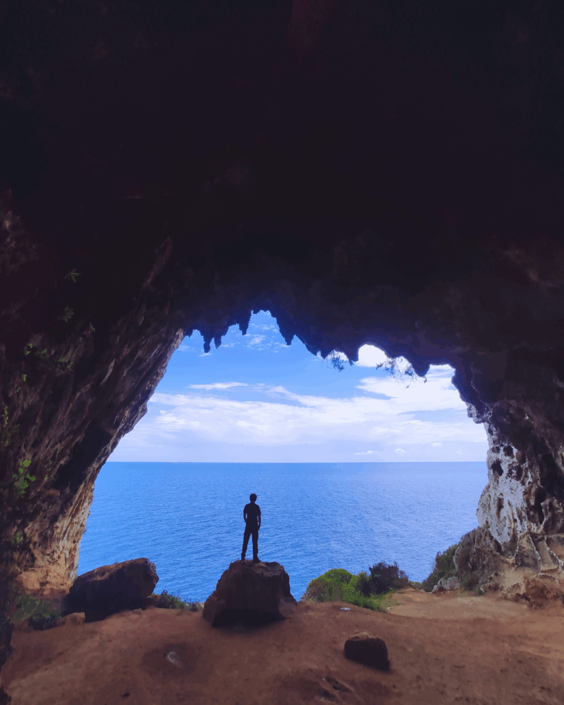 La seconda tappa, sviluppata lungo la costa, non sembra iniziare secondo i migliori auspici: il cielo velato minaccia pioggia e in parte rovina la visita alla grotta della poesia, una piscina naturale a un passo dal mare, uno specchio d’acqua azzurra nel bel mezzo della scogliera ocra. Marco racconta che, da bambino, veniva qui in vacanza e che era del tutto normale scendere lungo la scala scolpita nella pietra per tuffarsi in acqua.
