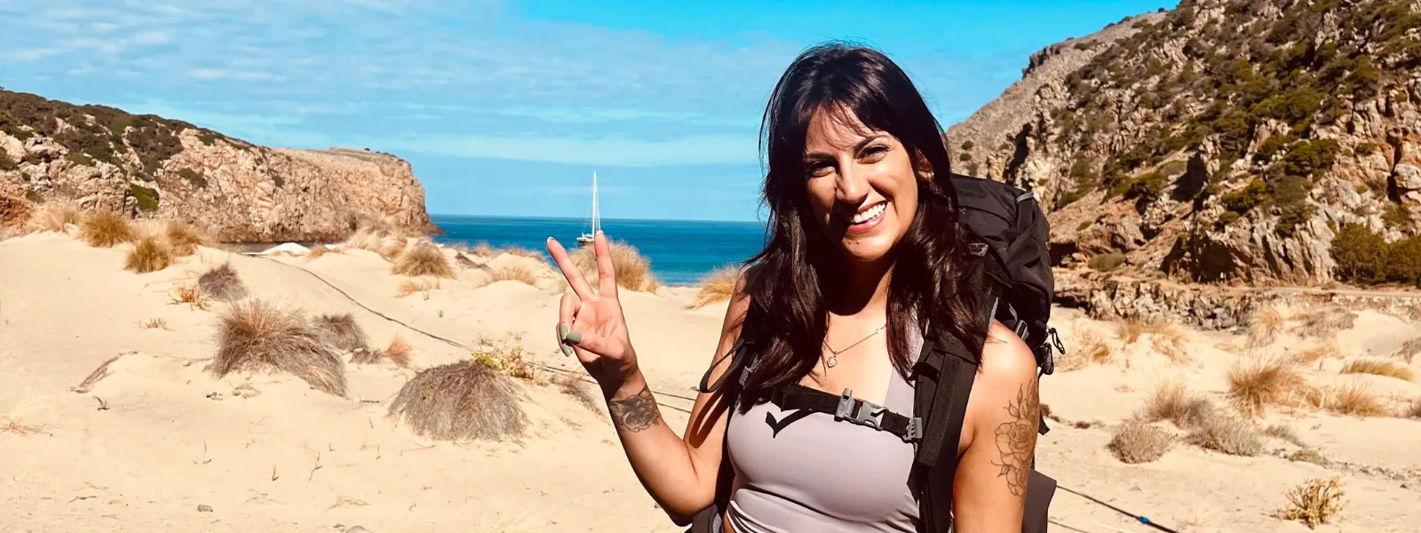 Quando finalmente abbiamo raggiunto la spiaggia di Piscinas, mi sono fermata a guardare il mare e all’improvviso mi sono riaffiorati i ricordi dell’infanzia. Ero stata qui da bambina, con i miei genitori e mio fratello, e rivedere quel paesaggio mi ha profondamente emozionata. C’è stato anche un momento in cui ho persino odiato il mare e la spiaggia. L’acqua nella sacca stava finendo, il sole mi batteva dritto in faccia, e la sabbia rifletteva il calore rendendo tutto ancora più pesante. Le vesciche cominciavano a farsi sentire: a volte riesco a ignorare il dolore, ma quando la stanchezza prende il sopravvento, ogni passo diventa una fitta.