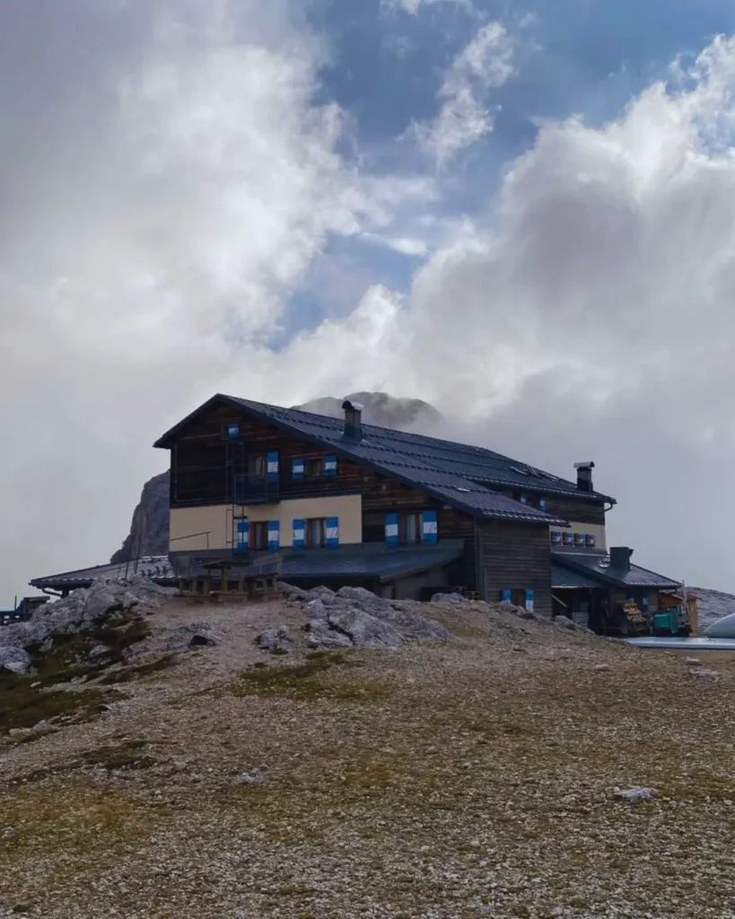 Il Rifugio Rosetta è un luogo accogliente, situato in una posizione privilegiata, che offre una vista impareggiabile sulle Dolomiti circostanti. Nonostante l’aspetto spartano tipico dei rifugi d’alta montagna, ci accoglie con un calore che ci rimette al mondo. Entriamo fradici, stanchi, ma felici. Il rifugio è semplice ma dotato di tutto il necessario: tavoloni in legno, una stufa accesa, il rumore della pioggia che batte contro le finestre. Ci cambiamo in fretta, stendiamo i vestiti ad asciugare e ci sediamo con una tazza di tè caldo tra le mani. È un momento di pura gratitudine, un rifugio non solo fisico ma anche emotivo, che ci dà la forza per affrontare il resto della giornata.