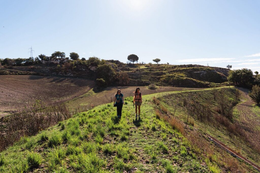Fine della prima tappa e inizio della seconda, a Mirabella Imbaccari il cammino entra nel cuore della campagna siciliana e il cibo si fa «essenziale, legato ai ritmi della terra. Qui la cucina nasce dai cereali, dall’olio extravergine d’oliva, dai prodotti che non conoscono spreco. È una cucina che parla di stagioni, di attese, di lavoro silenzioso,» racconta Totò. I grani coltivati nei campi intorno al paese di Mirabella Imbaccari vengono lavorati per diventare pane, pasta, zuppe semplici. Quello che conta in questi cibi è la sostanza, la capacità di nutrire e sostenere il corpo che affronta il cammino.