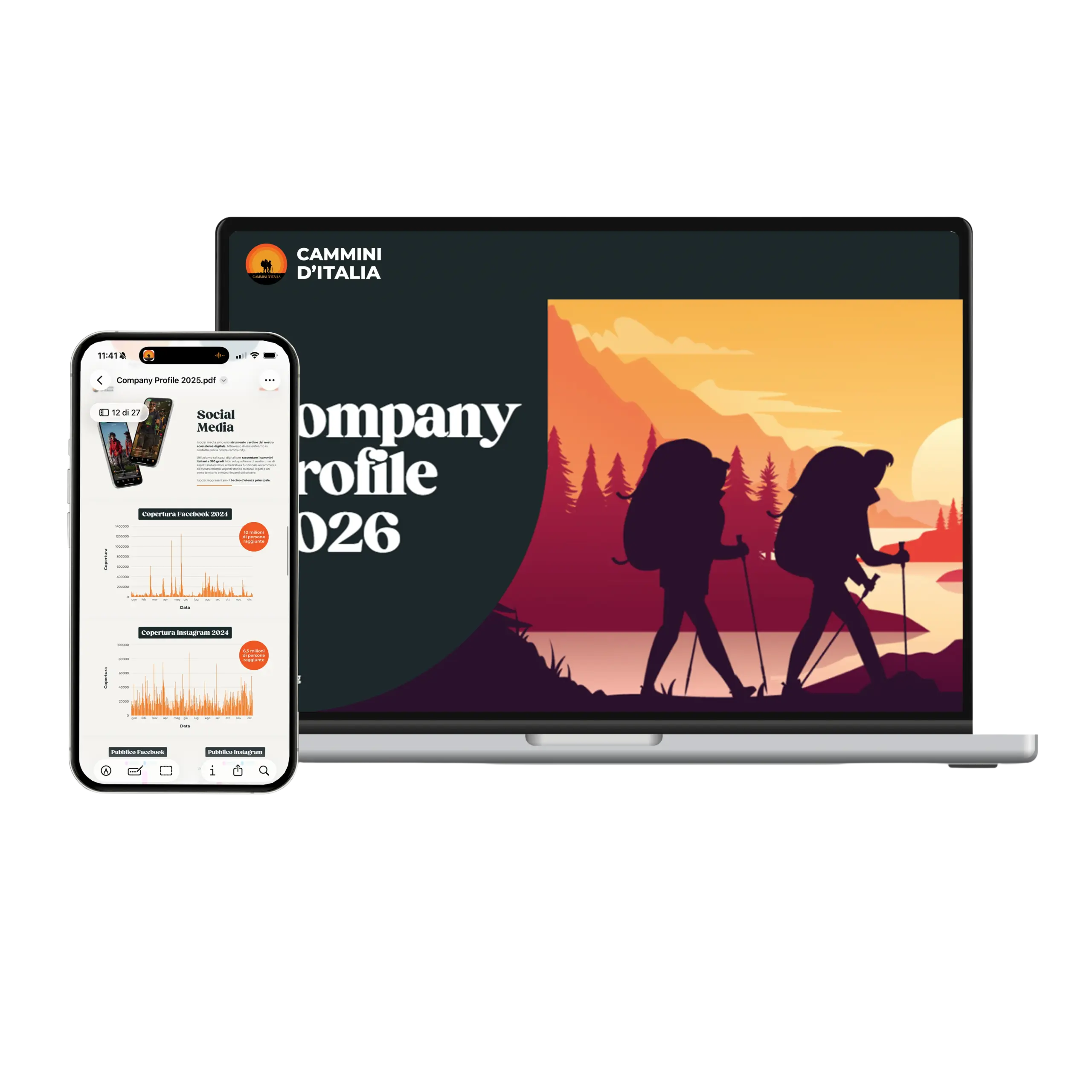 Il Company Profile di Cammini d’Italia è un’opportunità per chiunque voglia collaborare con noi. Scaricarlo è facile e veloce, e potrai consultarlo ovunque ti trovi, dal tuo smartphone, tablet o computer.